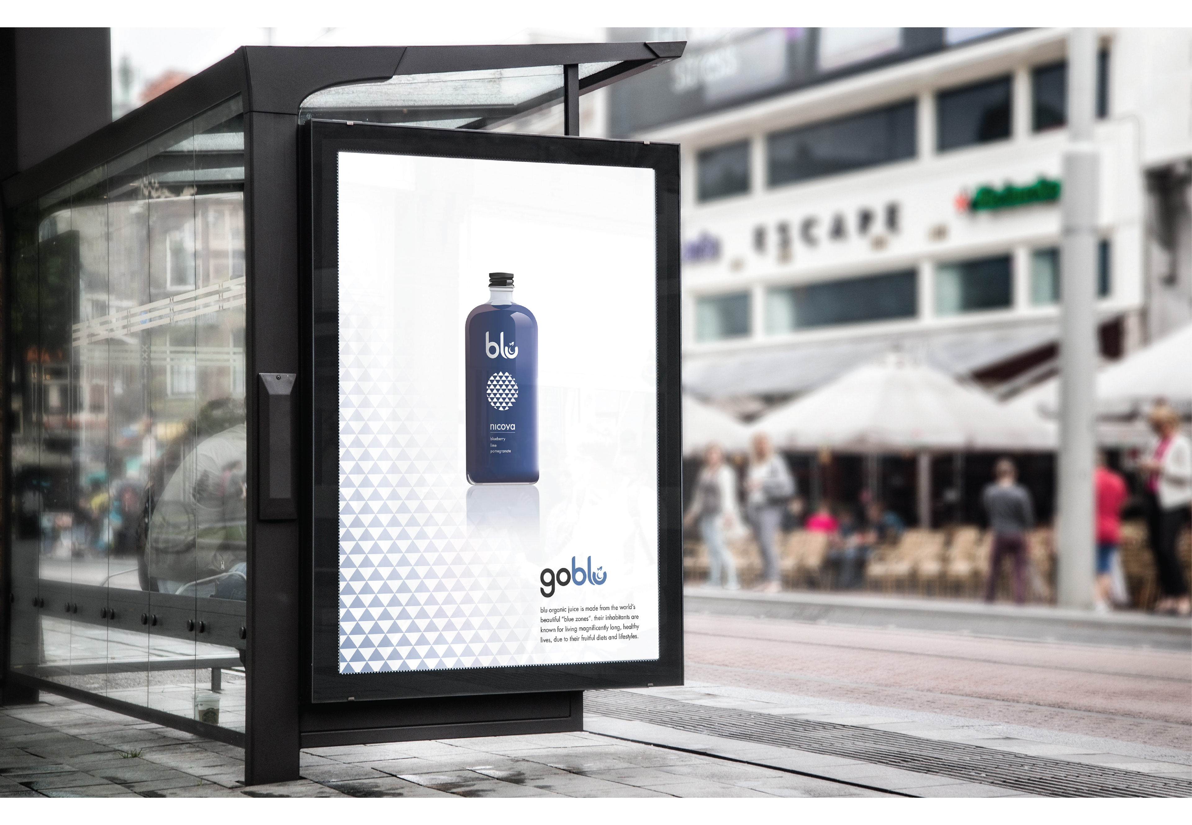 blu organic juice is a brand I created based around the healthy diets/lifestyles of the people in the various "Blue Zones" around the world. My brand incorporates five different mixed-fruit flavors, which are each named after a different "Blue Zone". With that in mind, I created patterns for each of the flavors that encourage the consumer to further experience the culture that each one of these "Blue Zones" has to offer. One could say that blu is just for people that live health conscious, active lifestyles, but I would argue that blu is for anyone who appreciates cultural diversity in our world, and who enjoys drinking juice that tastes really good.